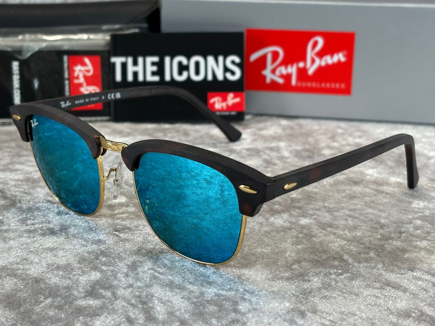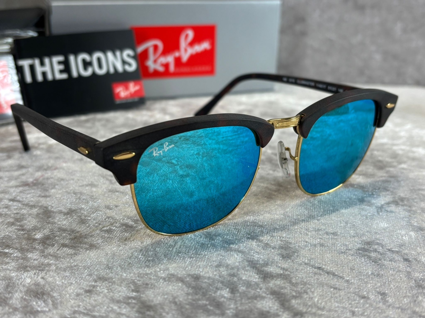 A brand new, unused and boxed pair of Ray-Ban RB3016 1145/17 Havana/Blue sunglasses, bringing a vibrant twist to one of Ray-Ban’s most iconic designs. The classic Clubmaster shape is elevated with a rich Havana frame paired beautifully with striking blue mirrored lenses, creating a bold, modern look while maintaining the timeless character the model is known for. With the Ray-Ban signature displayed on the lens, these sunglasses deliver unmistakable authenticity and style.