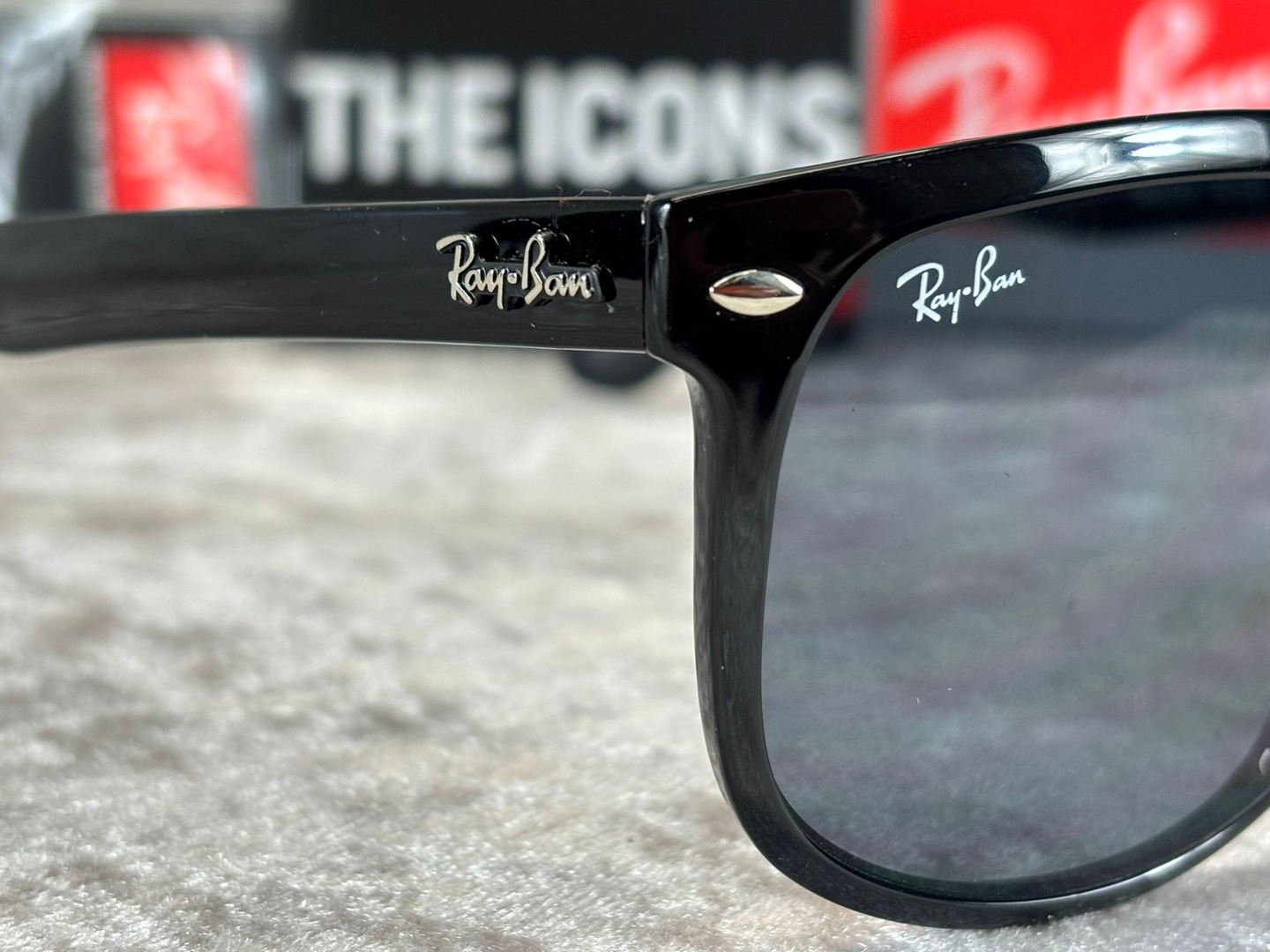 A brand new, unused and boxed pair of Ray-Ban RB4147 601/87 Black sunglasses, offering a bold, contemporary look with the easy-wearing comfort Ray-Ban is known for. The glossy black frame gives this larger, squared silhouette a sleek and confident presence, while the grey gradient lenses provide a smooth, balanced visual experience suited to everyday use. Completed with the Ray-Ban signature on the lens, this model delivers classic authenticity with a modern edge.