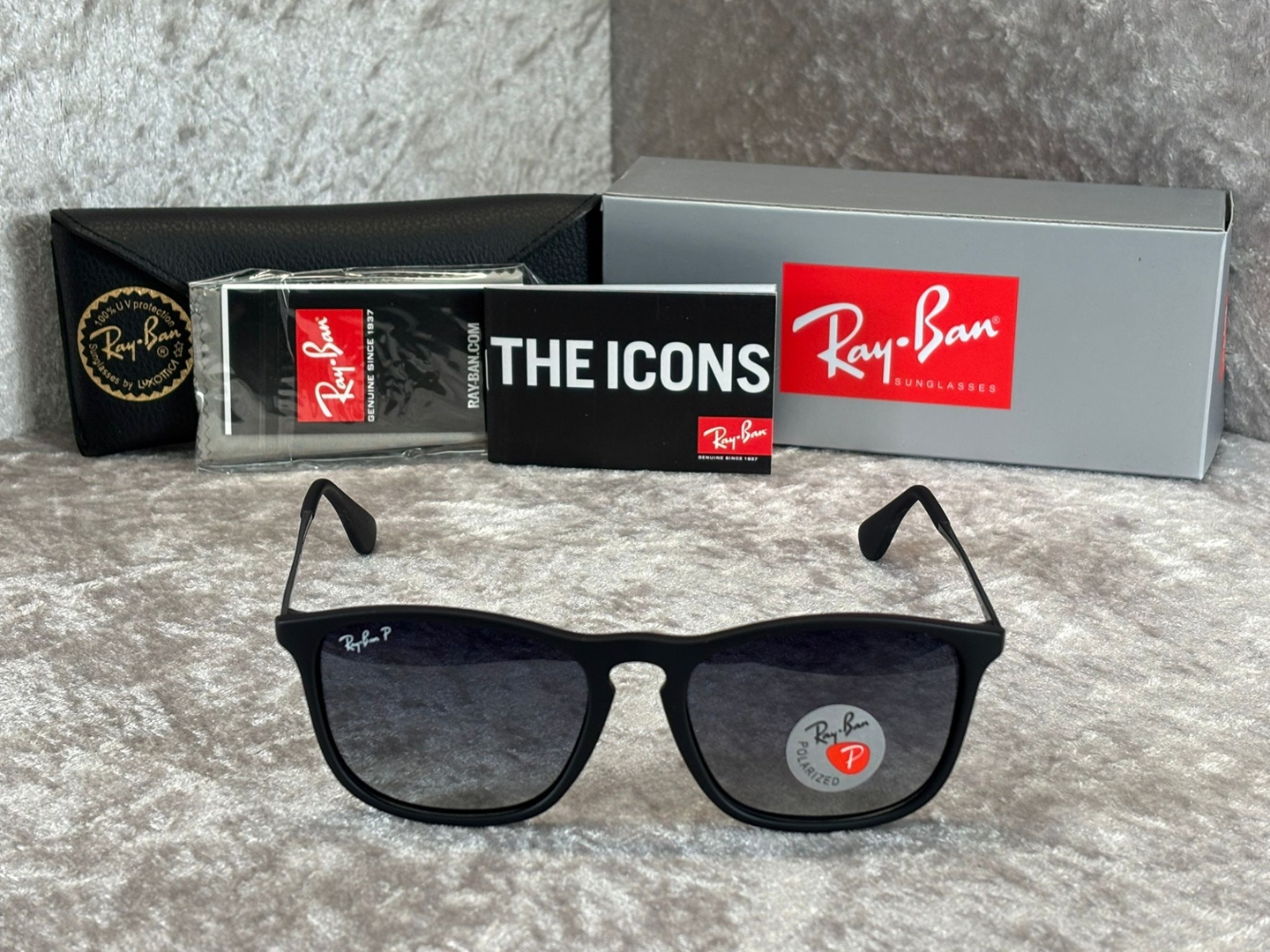 Presented exactly as they come from new, this set includes the official Ray-Ban box, protective case, cleaning cloth and documentation pack. Everything appears untouched and in factory-fresh condition, making them ideal for gifting or for buyers who want a completely pristine, unused item.