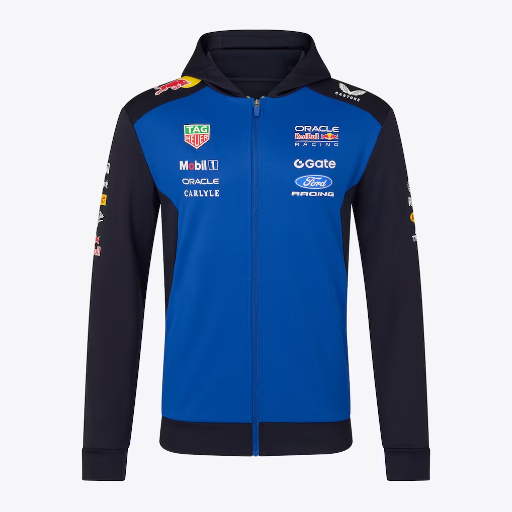 A brand new Red Bull Racing Teamline Full Zip Hoodie, an authentic piece of official teamwear as worn throughout the Formula One season. Designed in Red Bull Racing’s unmistakable colours, it captures the energy, precision, and modern identity of the team both on and off the circuit.