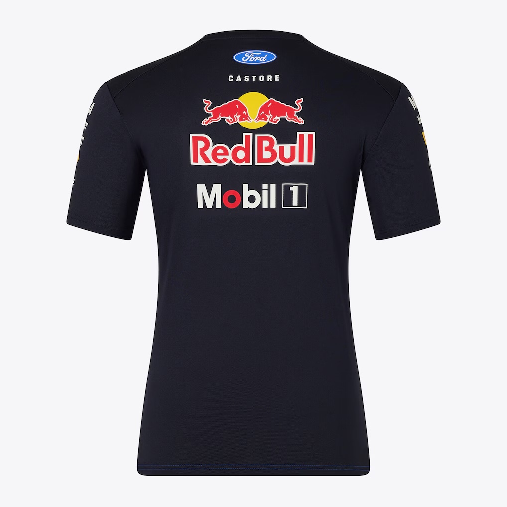 A brand new Red Bull Racing Teamline Set Up T-Shirt is an authentic piece of official teamwear, designed to mirror the exact style worn by the Oracle Red Bull Racing crew throughout the Formula One season. Finished in the striking blue and navy colourway, it features a modern digital camo pattern with prominent team and sponsor branding across the chest, shoulders and sleeves, delivering an unmistakable motorsport presence.