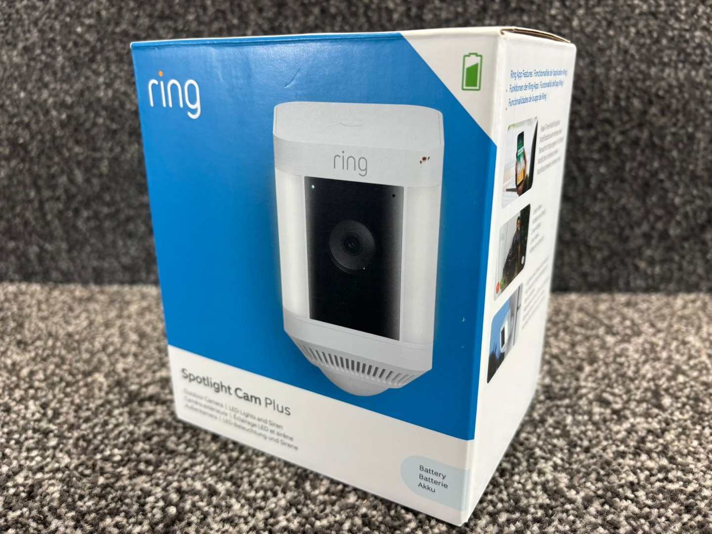 A brand new Ring Spotlight Cam Plus with HD Video, Two-Way Talk and Motion Controls.