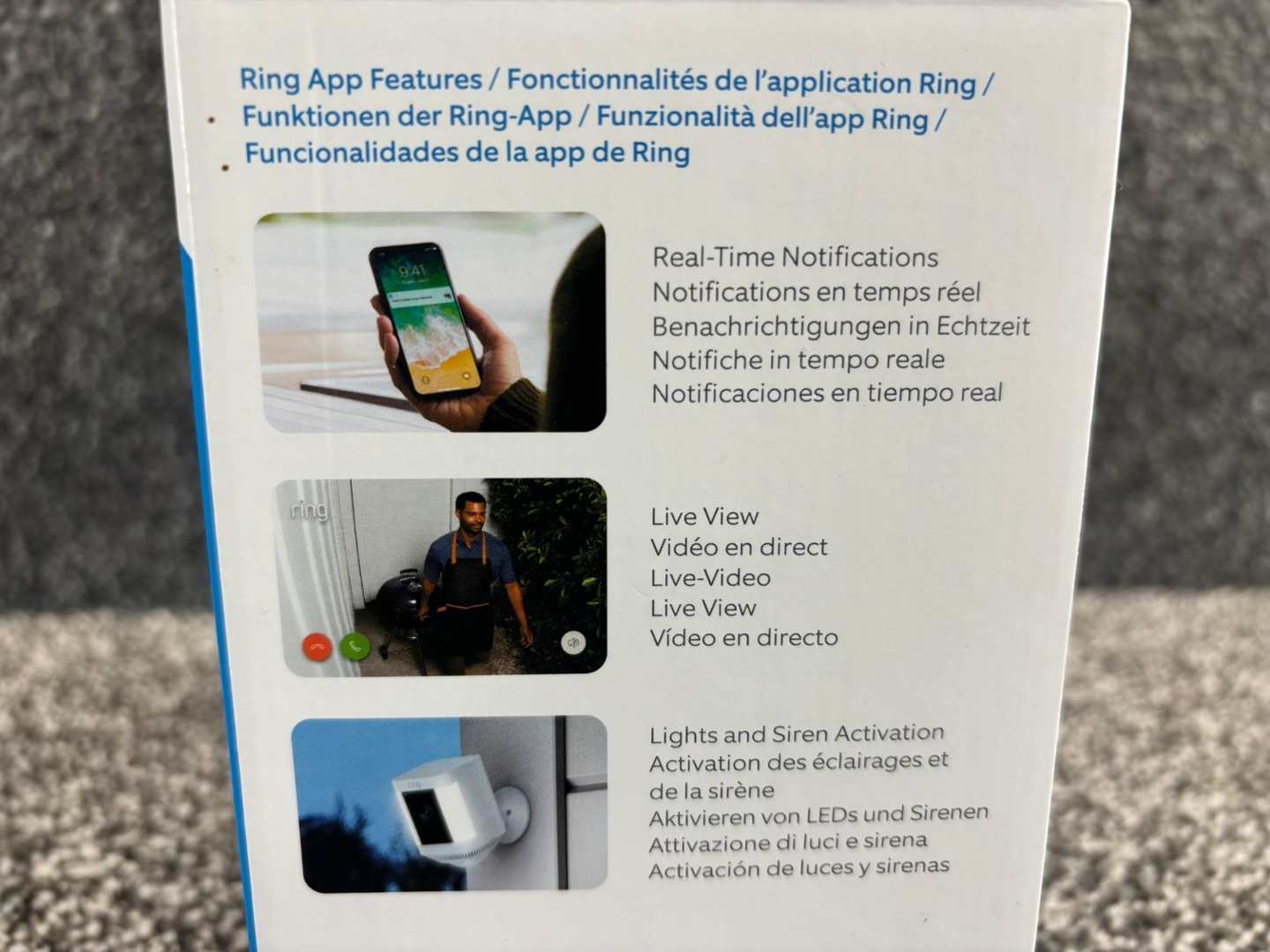 A brand-new Ring Spotlight Cam Plus, designed to give you peace of mind with smart, reliable protection. Featuring crisp HD video, it allows you to clearly see who’s at your door or around your property, day or night. The integrated spotlight ensures enhanced visibility, while motion detection alerts keep you instantly informed of any activity outside your home.