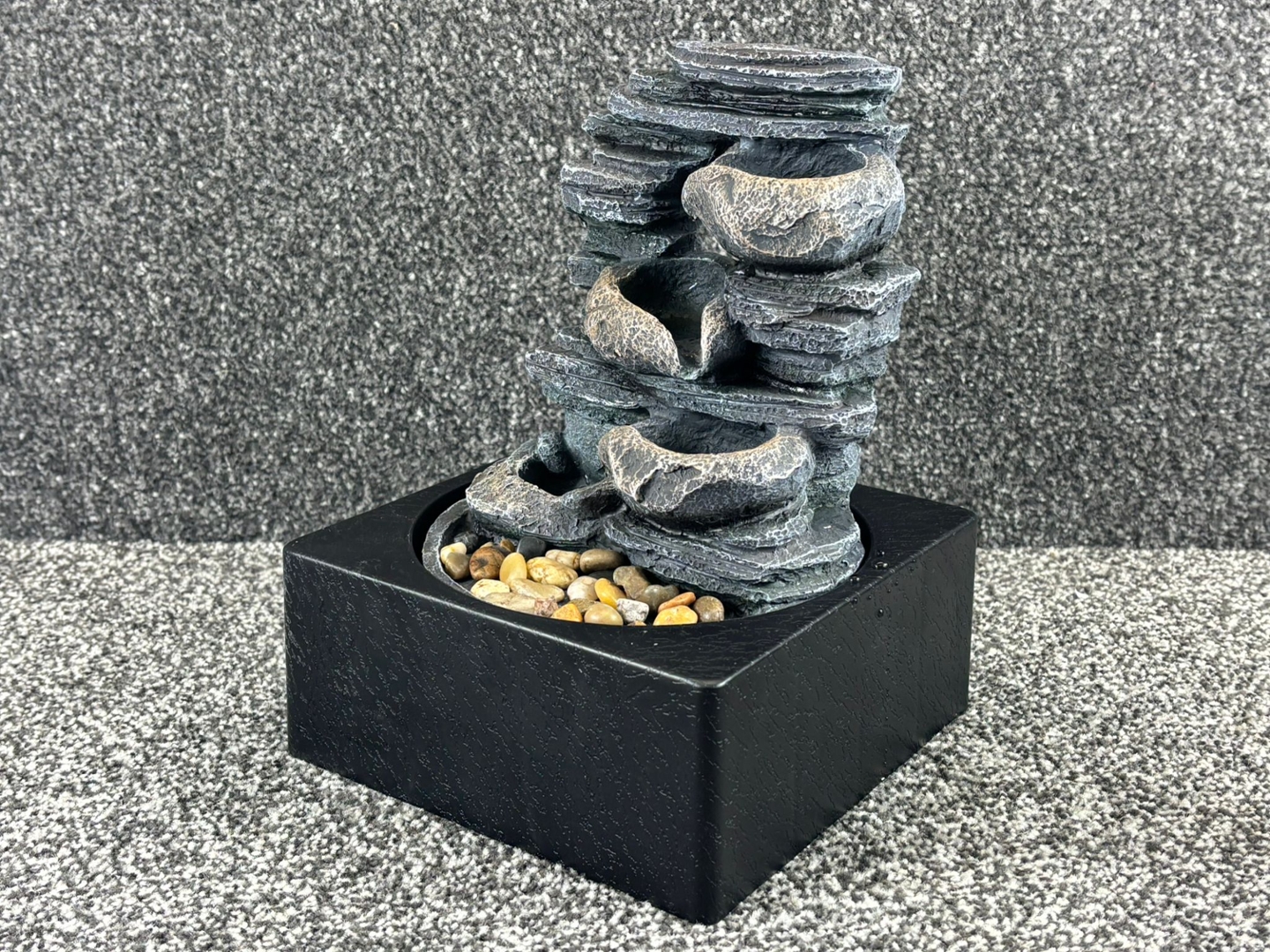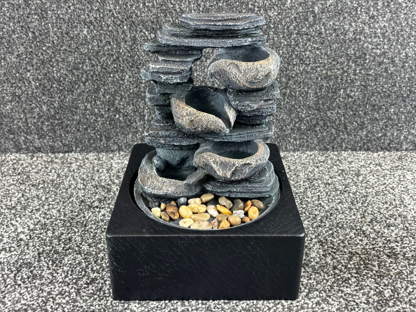 A Riverstone Falls Water Fountain. Suitable for indoor and outdoor use. Approx 24cm height, 18cm width, 18cm depth.