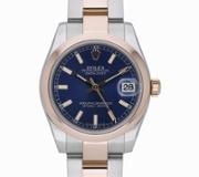A Rolex Date Watch, Stainless Steel on a Blue Dial