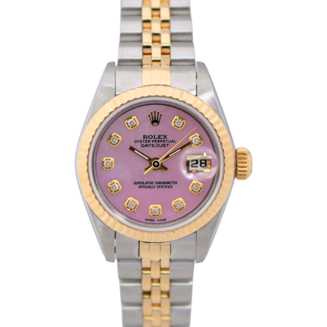 A Bi-Metal Rolex Datejust 26 Watch, Stainless Steel & 18ct Yellow Gold with a Yellow Gold Bezel on an Afterset Pink Mother of Pearl Dial with Diamond Numerals