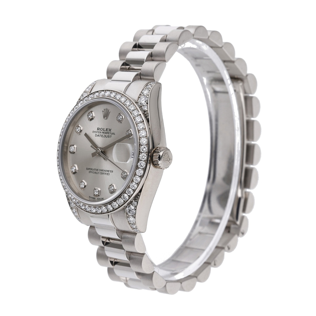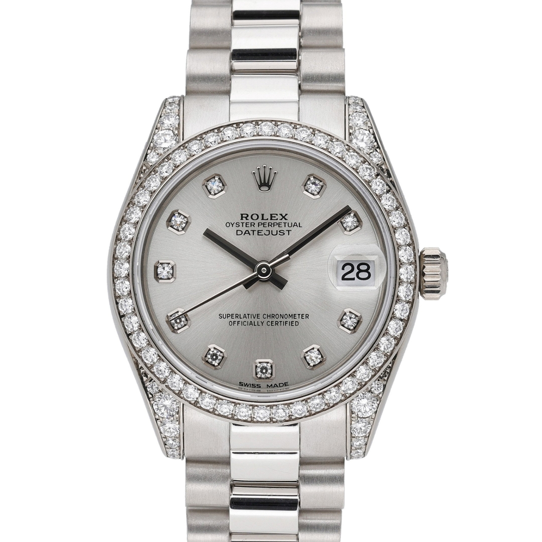 A Rolex Datejust 31 Watch, Full 18ct White Gold with a Diamond Bezel & Lugs on a Silver Dial with Original Rolex Diamond Numerals and a President Bracelet