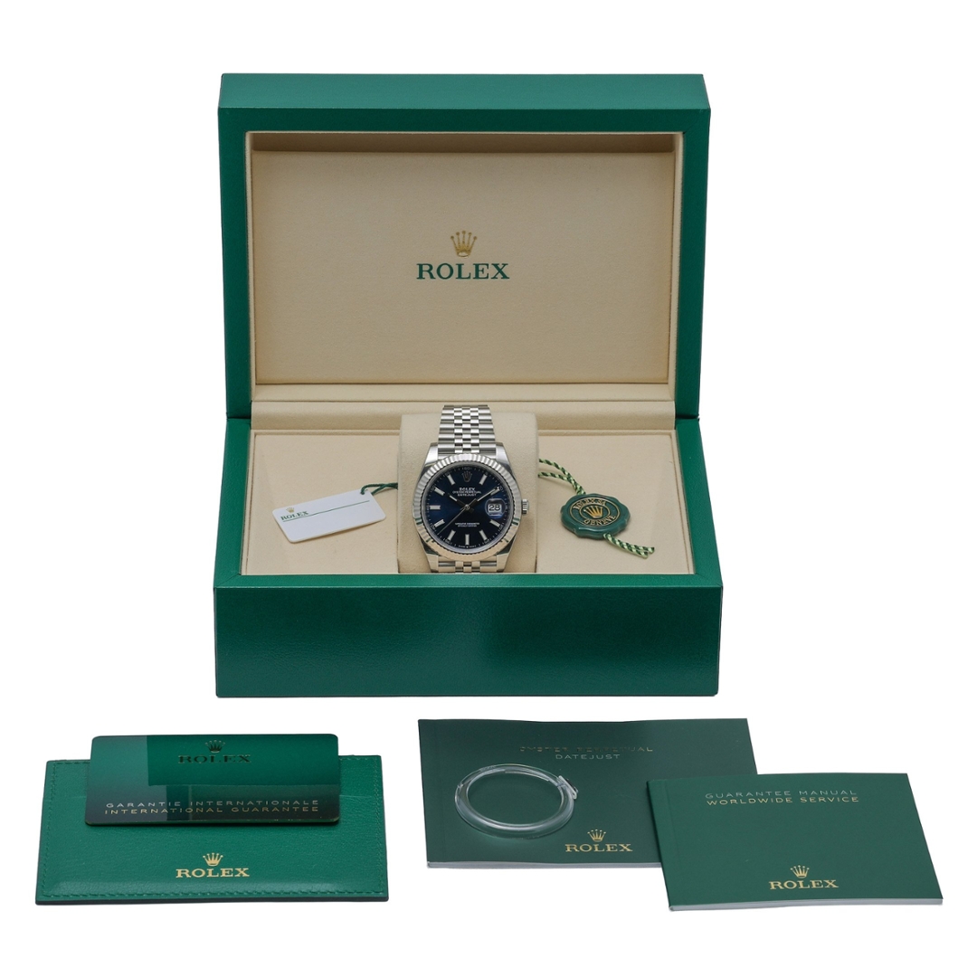 A Rolex Datejust 41 126334, crafted from stainless steel with an 18ct white gold fluted bezel, is a perfect blend of elegance, sophistication, and precision. Featuring a striking blue dial, this 41mm timepiece is a standout in the Datejust collection, offering a bold yet timeless aesthetic that is both versatile and refined.