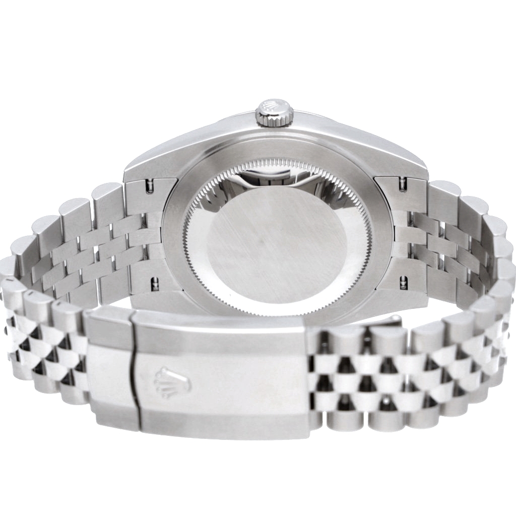 The 41mm Oyster case gives the watch a contemporary presence while maintaining the classic proportions that define the Datejust lineage. The smooth bezel, paired with the crisp white dial and luminous baton hour markers, delivers an understated sophistication suitable for both formal and everyday wear. The Jubilee bracelet ensures comfort and durability, completing this modern yet timeless design.