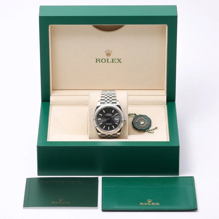 Presented in immaculate condition, this timepiece is backed by the Rolex Manufacturer Warranty, valid through 2030, providing peace of mind for years to come. Accompanied by its original full set of paperwork and meticulously boxed & certified, it stands as a testament to both its exceptional quality and the discerning taste of its wearer. A symbol of refined taste and unwavering precision, the Rolex Datejust 41 is more than just a watch—it's a statement of timeless elegance.