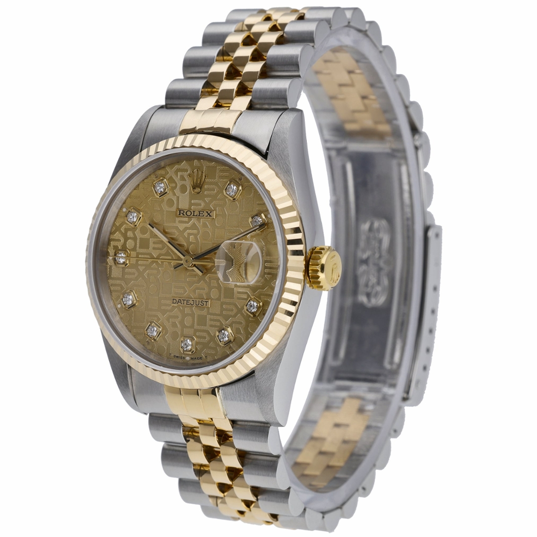 A Bi-Metal Rolex Datejust 36 Watch, Stainless Steel & 18ct Yellow Gold on a Jubilee Champagne Dial with Original Rolex Diamond Numerals