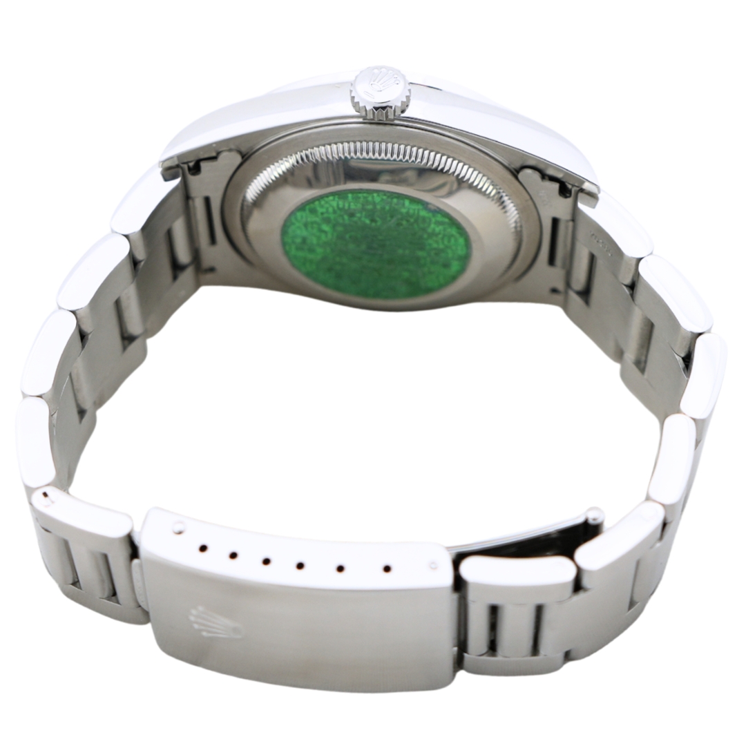 The watch is powered by the Rolex calibre 3135 automatic movement, a long-standing benchmark within the brand’s catalogue, renowned for its durability, precision, and ease of servicing. The sapphire crystal, screw-down crown, and Oyster bracelet ensure the familiar robustness expected of a Datejust from this era.