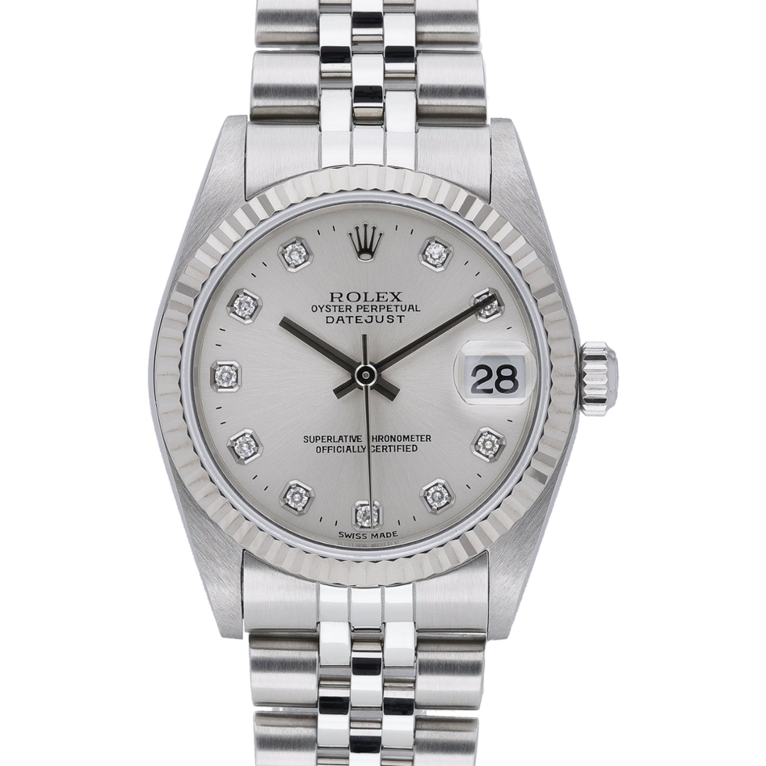 A Rolex Datejust 31 Watch, Stainless Steel with an 18ct White Gold Bezel on a Silver Dial with Original Rolex Diamond Numerals