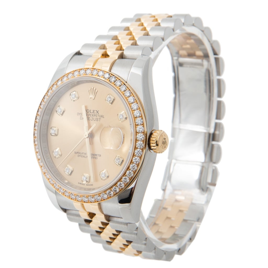 A Bi-Metal Rolex Datejust Watch, Stainless Steel and 18ct Yellow Gold with an Original Diamond Bezel/Numerals and a Champagne Dial.