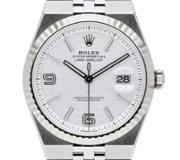 Powering the watch is the Rolex Calibre 3135 automatic movement, which operates at 28,800 vibrations per hour and has an approximate 48-hour power reserve. The movement features a free-sprung balance, Breguet overcoil, and a bidirectional Perpetual winding system, ensuring stable timekeeping and long-term reliability. The Oyster case provides water resistance to 100 metres, making it suitable for regular wear without compromising its performance.