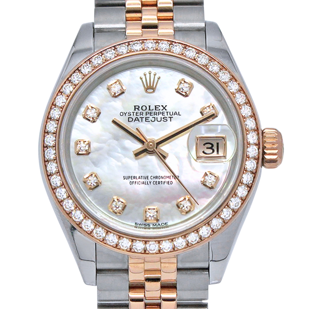 A Rolex Datejust Watch, Stainless Steel and 18ct Rose Gold with an Original Diamond Bezel and a Mother-of-Pearl Dial with Original Rolex Diamond Numerals.