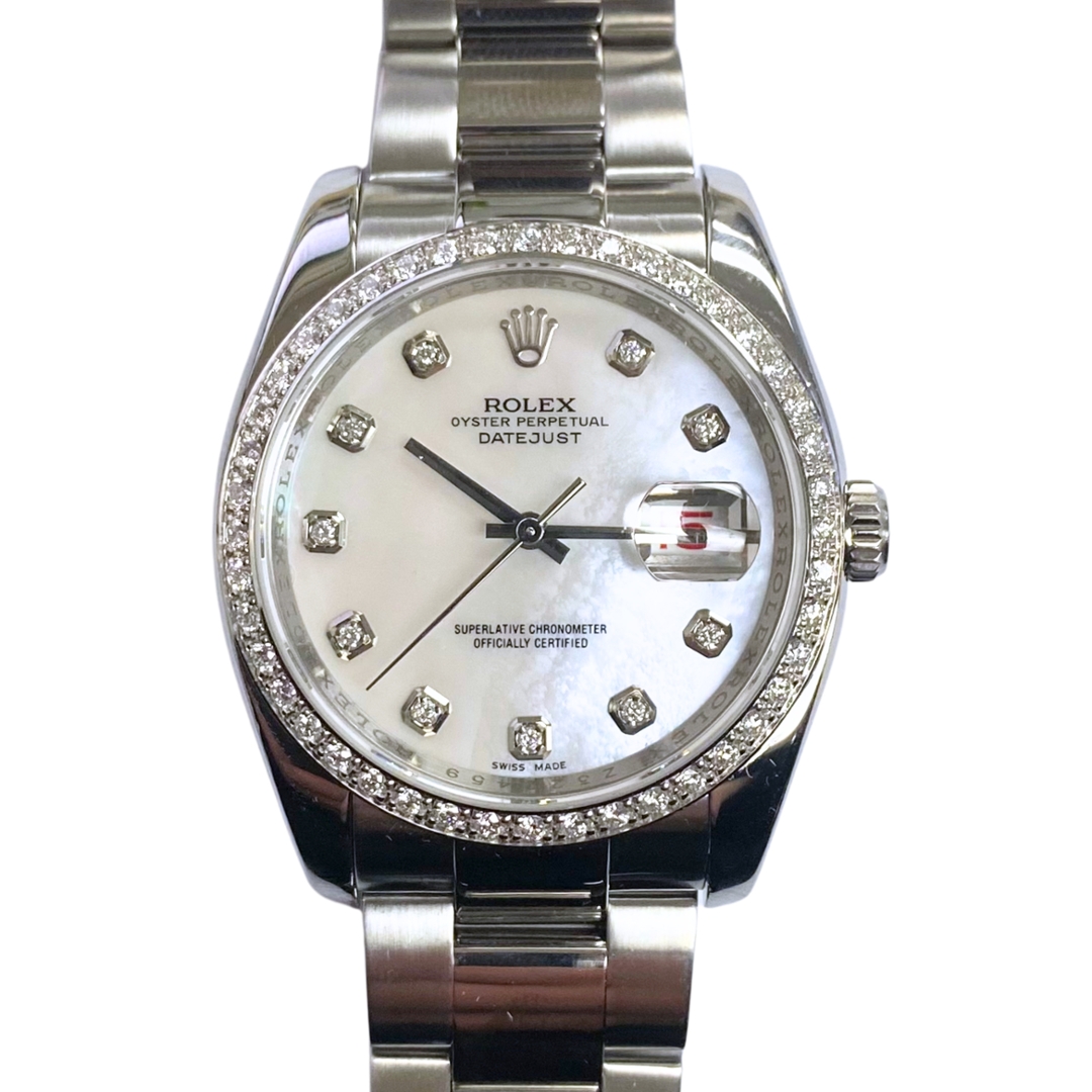 A Rolex Datejust Watch, Stainless Steel with an Afterset Diamond Bezel and an Afterset Mother of Pearl Diamond Dial