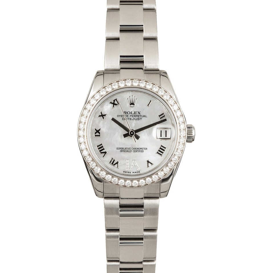 A Rolex Datejust Watch, Stainless Steel with an Original Diamond-Set 18ct White Gold Bezel on a Mother of Pearl Dial with an Original Rolex Diamond Numerals IV.
