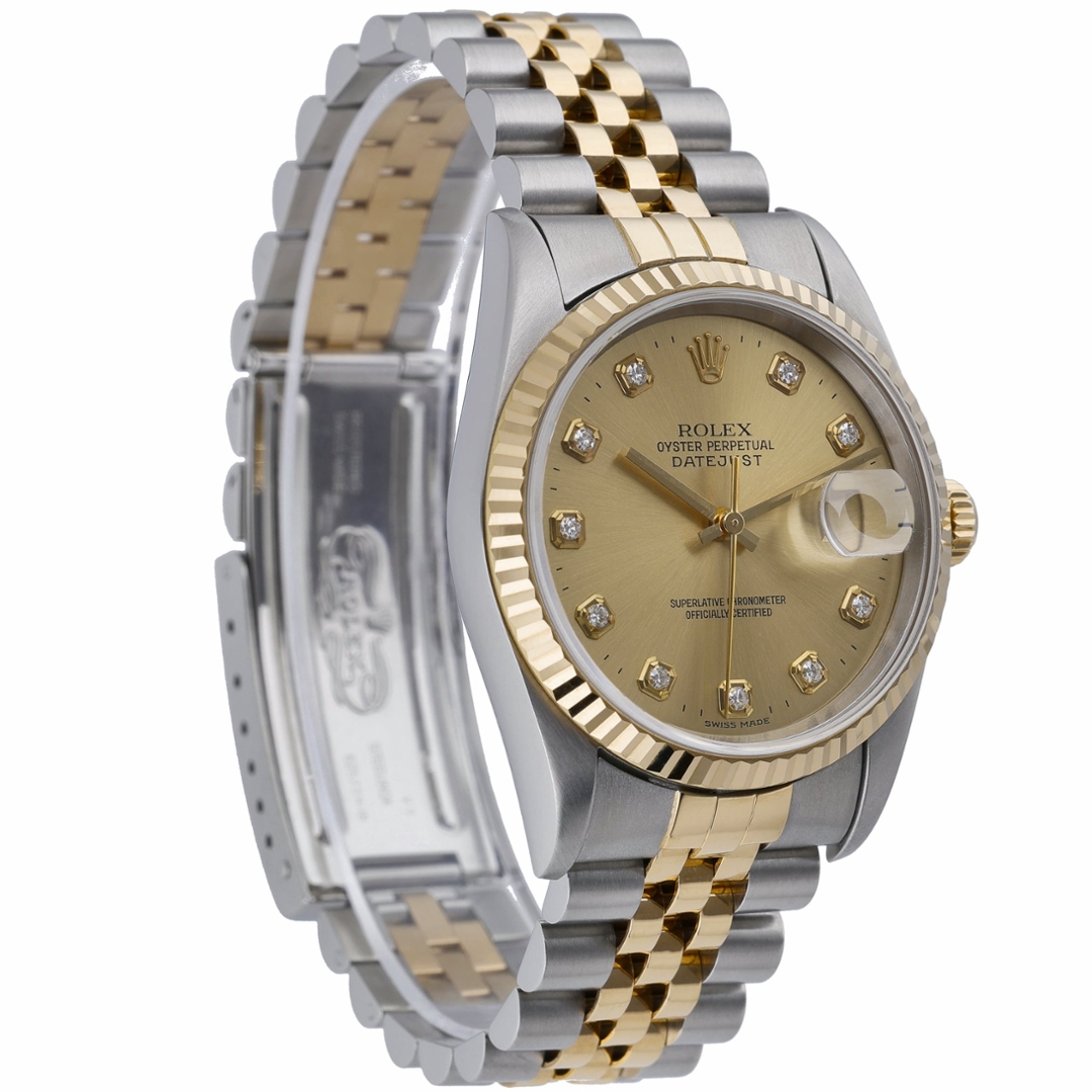 A Bi-Metal Rolex Datejust Watch, Stainless Steel & 18ct Yellow Gold on a Champagne Dial with Original Rolex Diamond Numerals