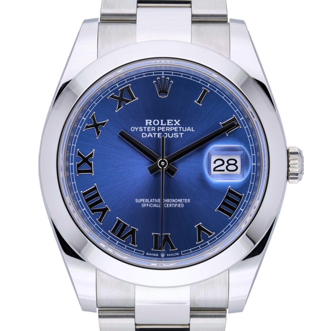 A Rolex Datejust 41 Watch, Stainless Steel on an Azzuro Blue Roman Dial.