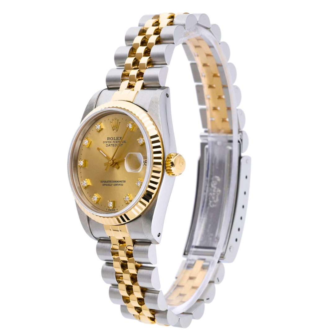 A Bi-Metal Rolex Datejust Watch, Stainless Steel & 18ct Yellow Gold with an 18ct Yellow Gold Fluted Bezel on a Champagne Jubilee Dial with Original Rolex Diamond Numerals