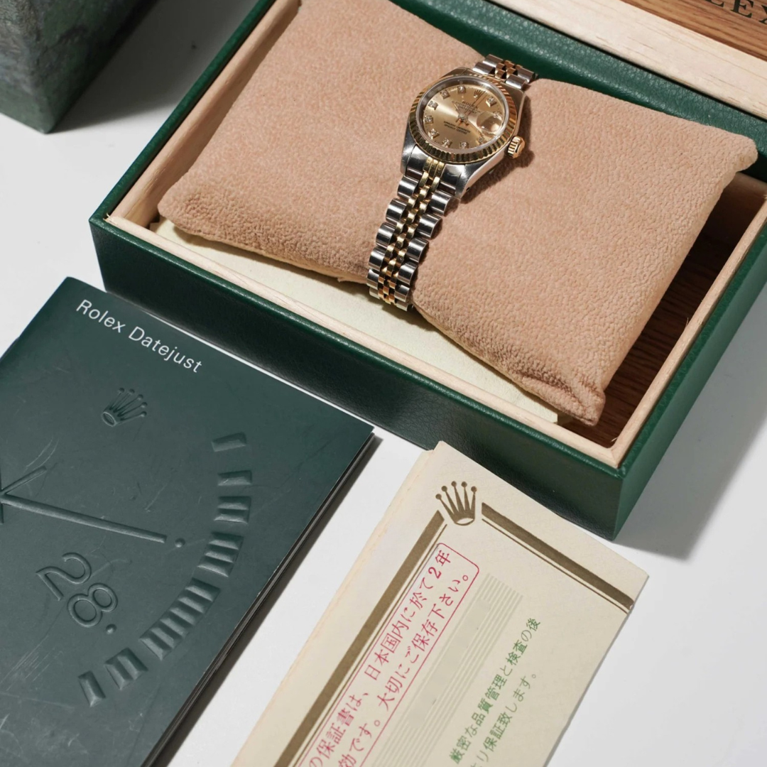 Powered by a Rolex automatic movement, this model delivers reliable timekeeping and enduring performance, built to the brand’s exacting standards. The Datejust is one of Rolex’s most iconic designs, and this vintage example combines traditional two-tone construction with the added luxury of factory-set diamond numerals.