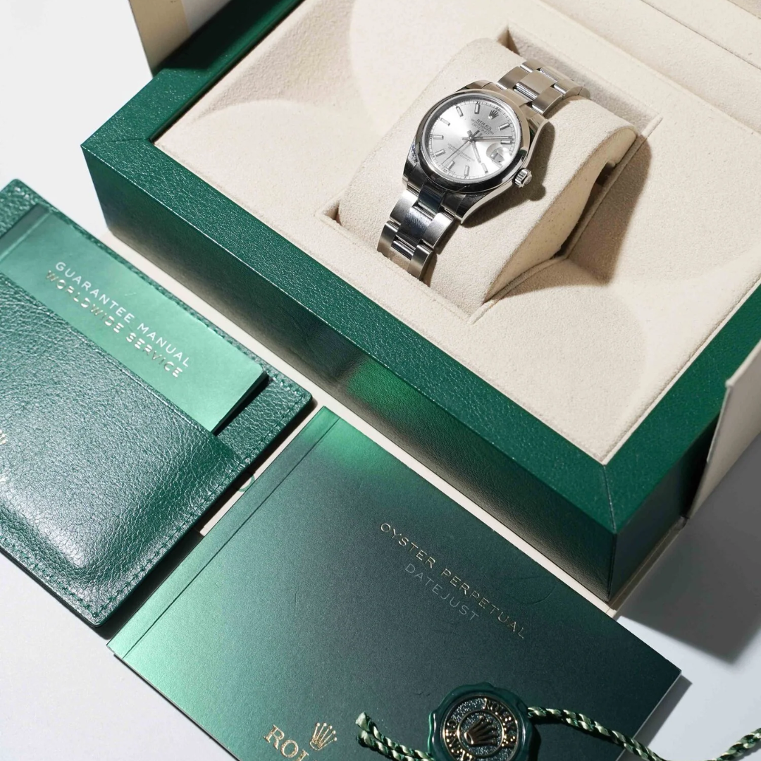 Presented in immaculate condition and accompanied by its original Rolex paperwork, box, and certification, this example is supplied with a 12-month WLC warranty. The 178240 remains a highly wearable and timeless Datejust reference, offering understated elegance and dependable performance within the Rolex range.