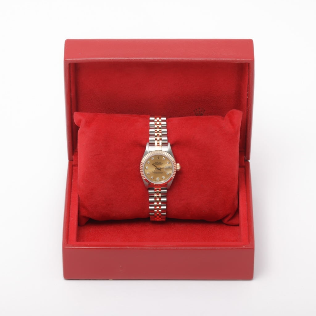 A Bi-Metal Rolex Datejust Watch, Stainless Steel and 18ct Yellow Gold with a Fluted Yellow Gold Bezel and a Champagne Dial with Original Rolex Diamond Numerals.