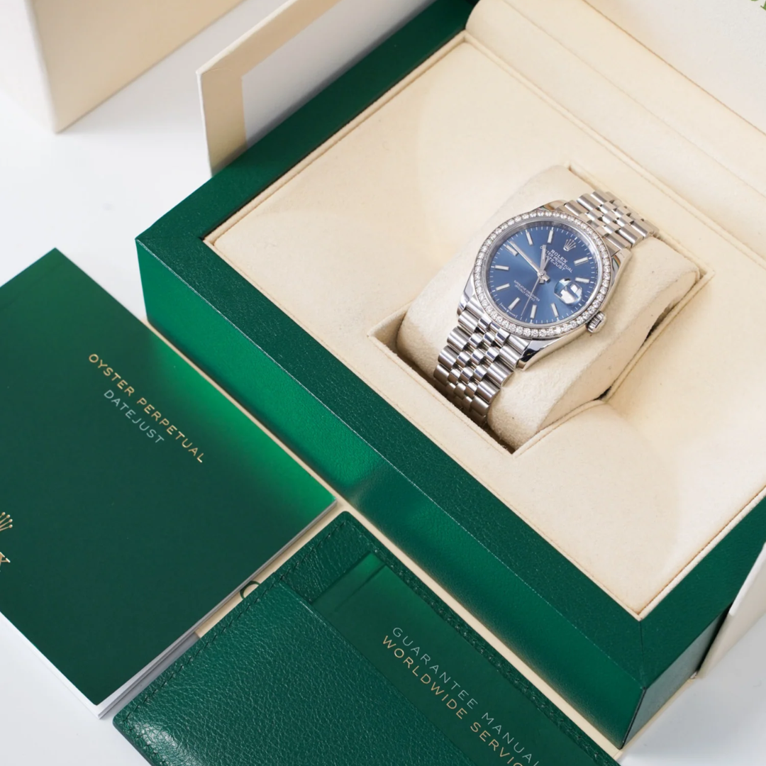 Diamond-bezel Datejust models with blue dials remain consistently sought after, combining timeless design with elevated luxury. Offered with its original full set of paperwork, presentation box, and a 12-month WLC warranty, this 126284RBR represents a well-balanced opportunity within the modern Rolex market.