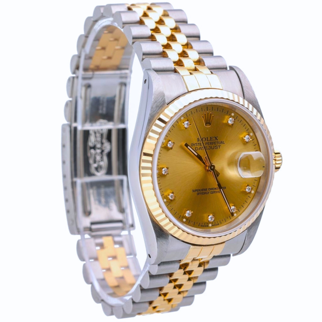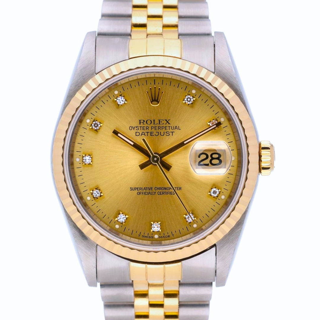 A Rolex Datejust Watch, Stainless Steel & 18ct Yellow Gold on a Champagne Dial with Original Rolex Diamond Numerals