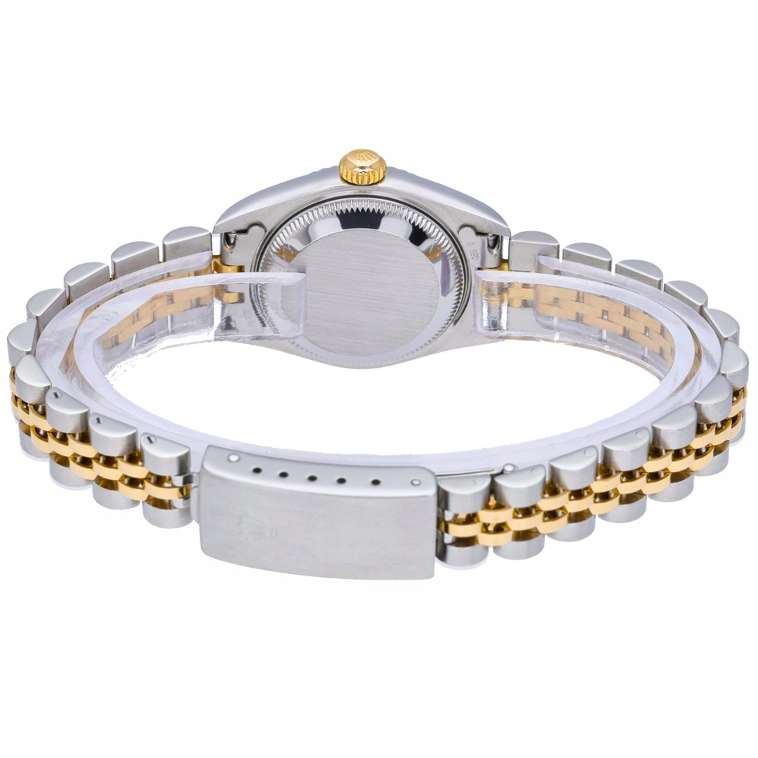 A Bi-Metal Rolex Datejust combining stainless steel and 18ct yellow gold, presented in the classic 26mm case with the iconic Jubilee bracelet. The yellow gold fluted bezel adds a signature Rolex detail, framing a clean white dial set with applied Roman numeral hour markers in gold tones, delivering a timeless and elegant aesthetic that remains highly sought after.