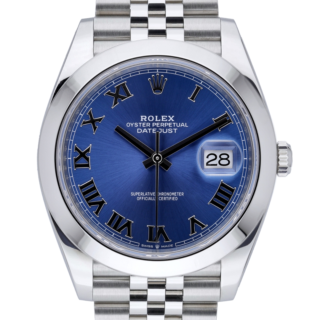 A Rolex Datejust 41 Watch, Stainless Steel on a Blue Dial.
