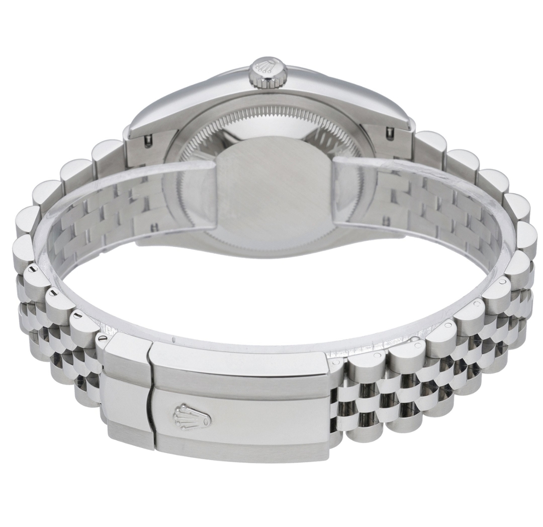 At the heart of this Datejust beats the Rolex Calibre 3235, an automatic movement renowned for its exceptional precision and reliability. The Calibre 3235 offers a 70-hour power reserve and features Rolex's innovative Chronergy escapement, improving energy efficiency and accuracy. The movement powers the iconic date window at 3 o’clock, which changes precisely at midnight, and the smooth-sweeping second hand further emphasises Rolex's commitment to high-end craftsmanship.