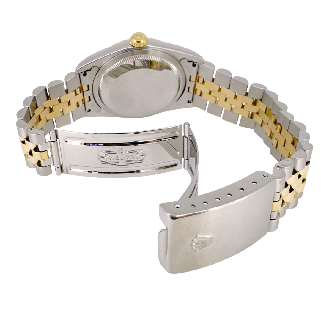 The 36mm Oyster case houses the Rolex Calibre 3135 automatic movement, renowned for its durability, precision, and ease of servicing. Paired with the Jubilee bracelet, this reference represents one of the most enduring and recognisable combinations within the Datejust range, balancing everyday wearability with classic Rolex design.