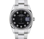Dated to 2005, this example is offered in immaculate condition and comes complete with its original Rolex box, paperwork, and certification. Backed by a 12-month WLC warranty, it provides reassurance alongside collectable value. The Rolex Datejust 16200, featuring an aftermarket diamond bezel and dial, presents a unique opportunity to own a true classic enhanced with contemporary luxury.