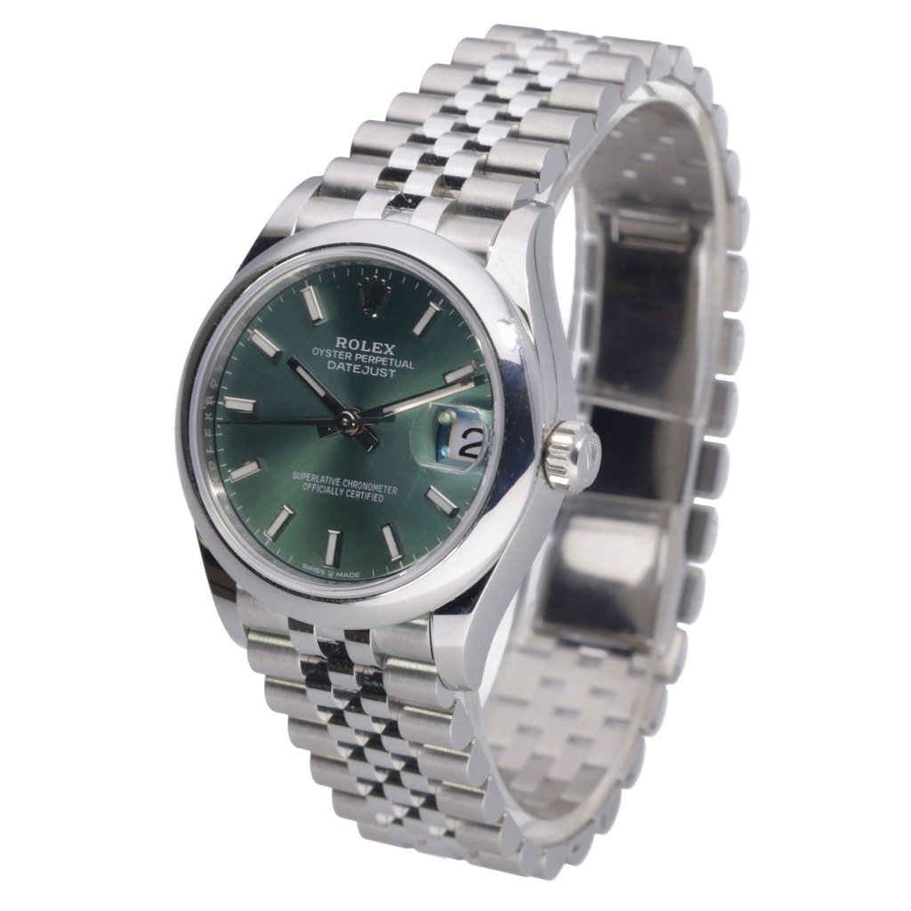 A Rolex Datejust 278240, crafted in stainless steel and featuring a stunning green dial. This rare and eye-catching configuration adds a modern twist to one of Rolex’s most timeless designs. With a 31mm case, this watch strikes a perfect balance of elegance and everyday versatility, making it ideal for those who appreciate subtle luxury with a contemporary edge.