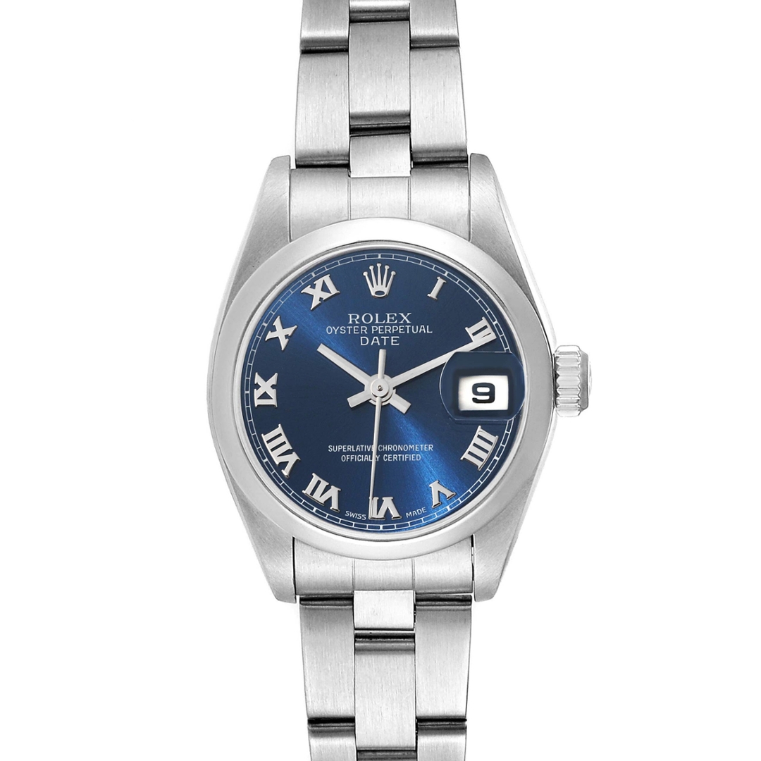 The watch itself is a vision of understated elegance — a 26mm stainless steel case with a smooth bezel and the enchanting blue Roman numeral dial that captures light beautifully. The bold, silvered numerals contrast perfectly against the sunburst finish, adding depth and sophistication to every glance. Its automatic chronometer movement delivers exceptional precision, reflecting Rolex’s commitment to performance and reliability.