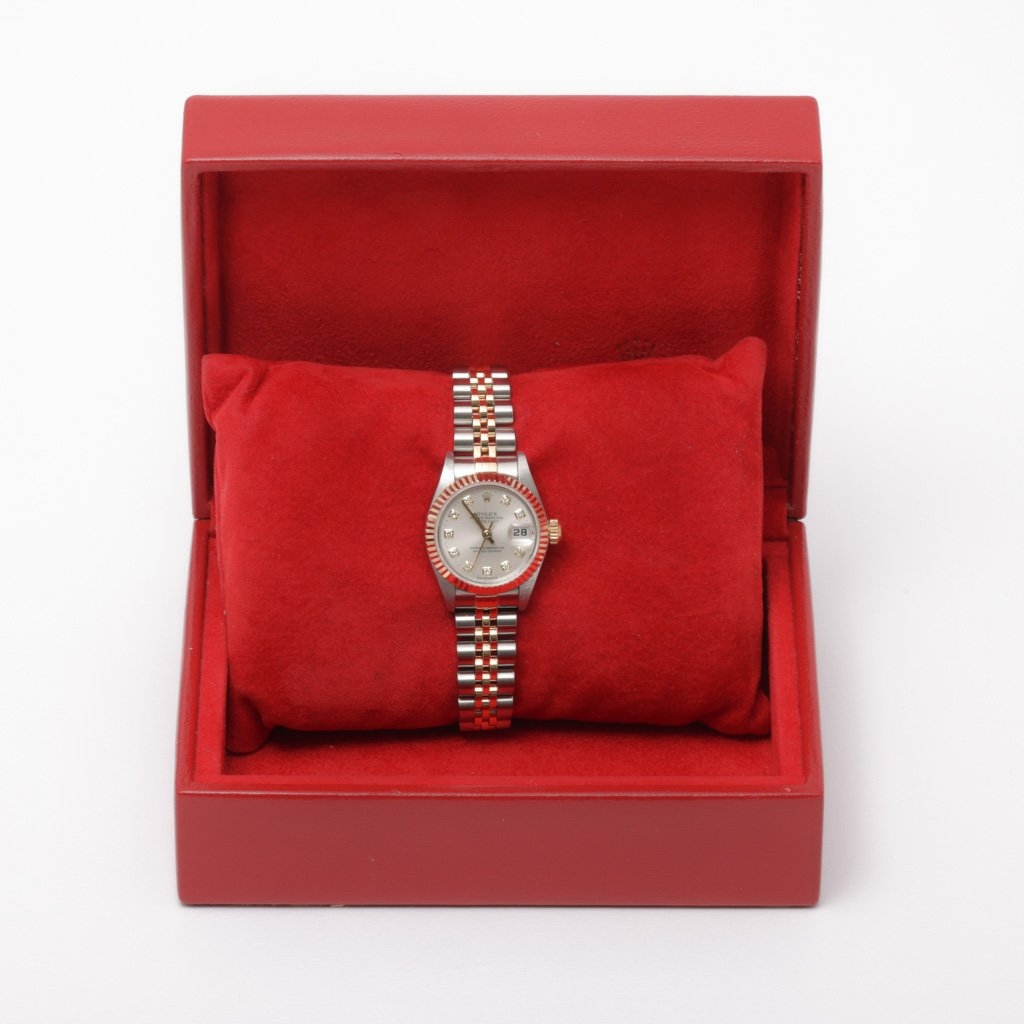 A Bi-Metal Rolex Datejust Watch, Stainless Steel & 18ct Yellow Gold on a Silver Dial with Original Rolex Diamond Numerals