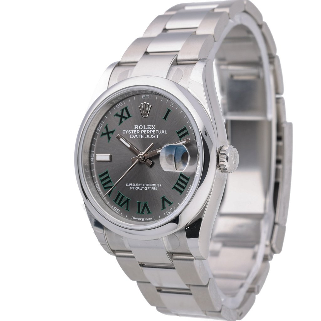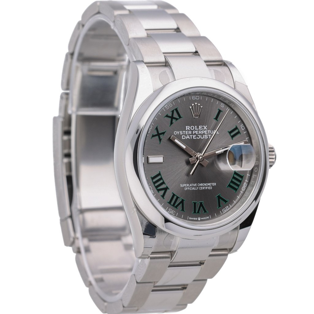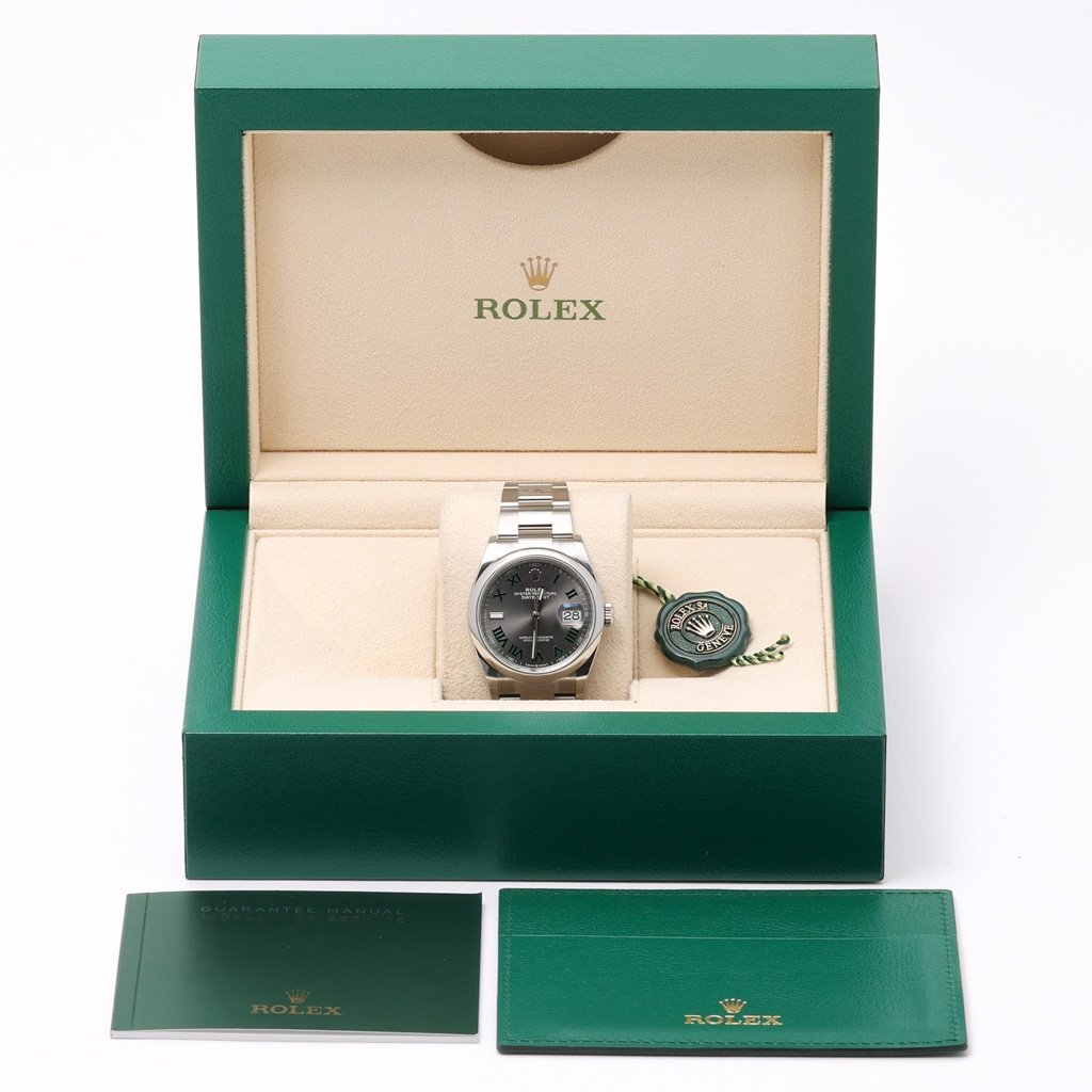 Presented in immaculate, unworn condition, this 2024 model has the complete original paperwork confirming its authenticity and is covered by the Rolex manufacturer's warranty until 2029. Boxed and certified, the watch represents a sound investment and a stylish, everyday companion for its next owner. The stainless steel Datejust with a slate dial remains one of the most versatile and popular Rolex models, ideal for those who appreciate elegance combined with performance.