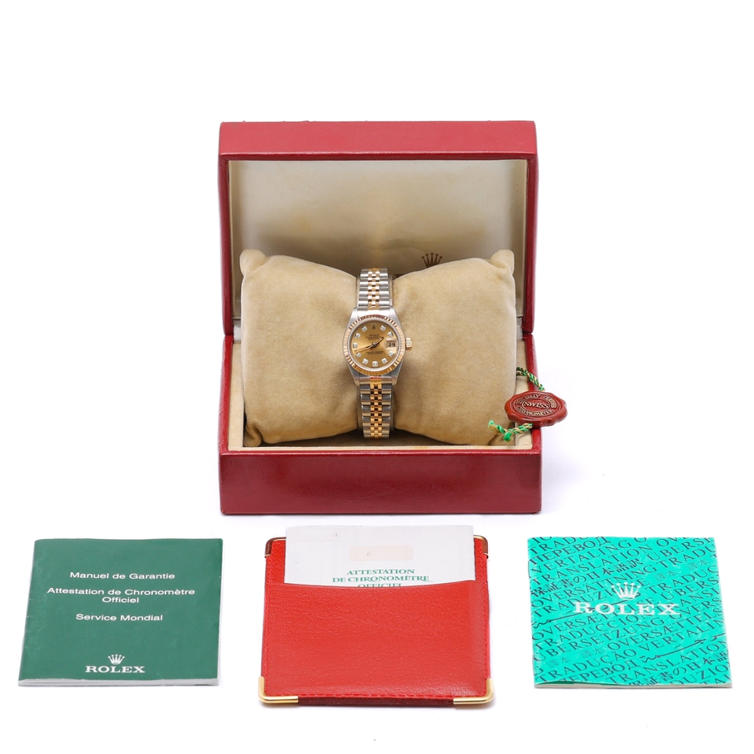 A Bi-Metal Rolex Datejust Watch, Stainless Steel & 18ct Yellow Gold on a Champagne Dial with Original Rolex Diamond Numerals