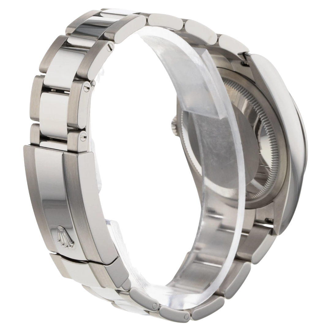 A Rolex Datejust 126200, a sleek and modern iteration of the classic Datejust design, is a stunning timepiece that combines precision, style, and versatility. This 2024 model is crafted from stainless steel, offering robustness and a refined aesthetic. The 36mm case provides a more significant wrist presence while maintaining a timeless, elegant profile. The slate dial is striking, offering a dark, sophisticated hue that contrasts beautifully with the polished silver hour markers and hands. This contemporary colour choice gives the watch a unique, understated look that is versatile for any occasion.