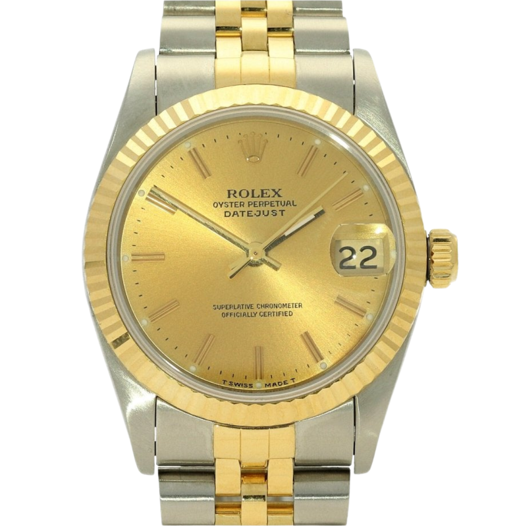 A Bi-Metal Rolex Datejust Watch, Stainless Steel & 18ct Yellow Gold with an 18ct Yellow Gold Bezel on a Champagne Dial
