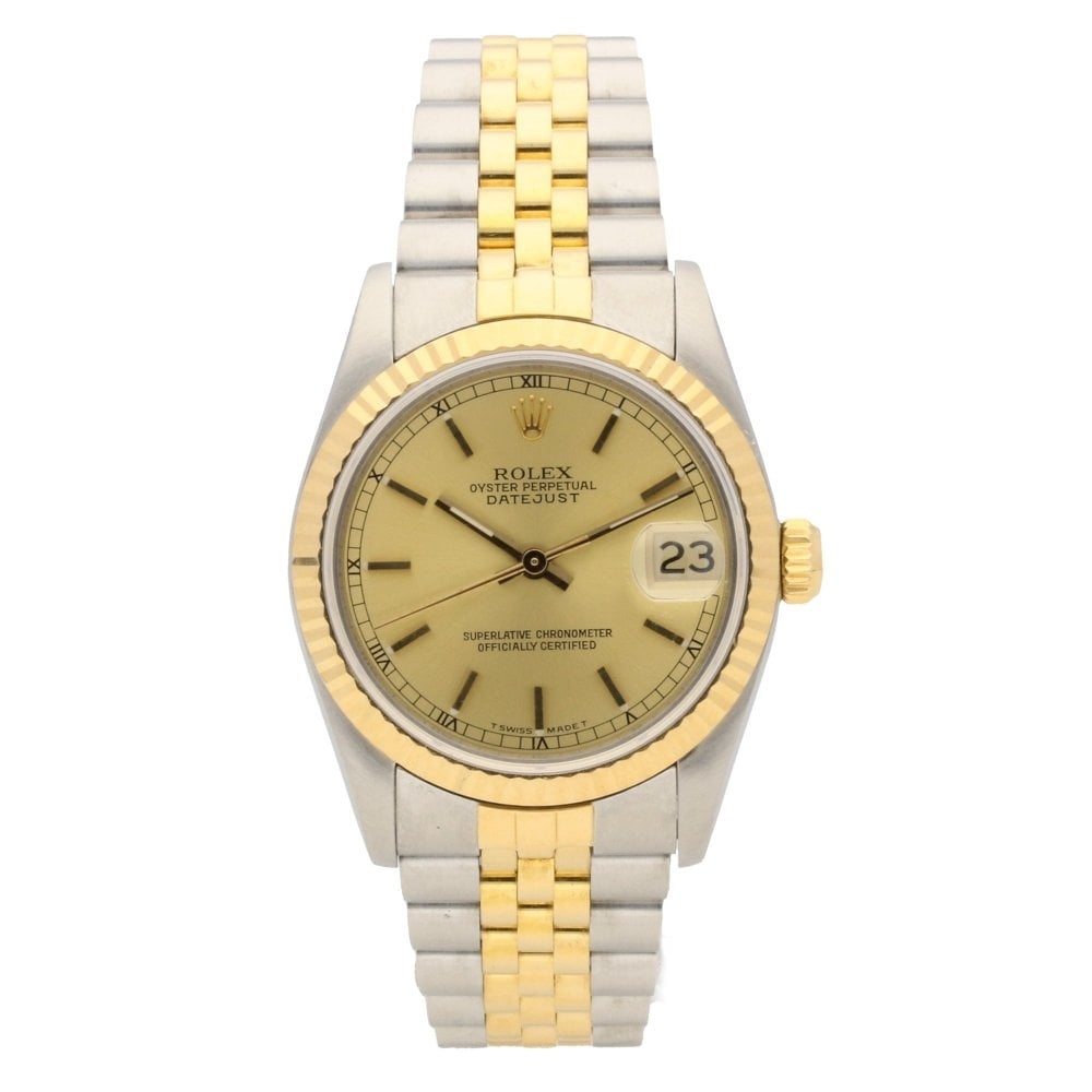 A Bi-Metal Rolex Datejust Watch, Stainless Steel & 18ct Yellow Gold with an 18ct Yellow Gold Bezel on a Champagne Dial