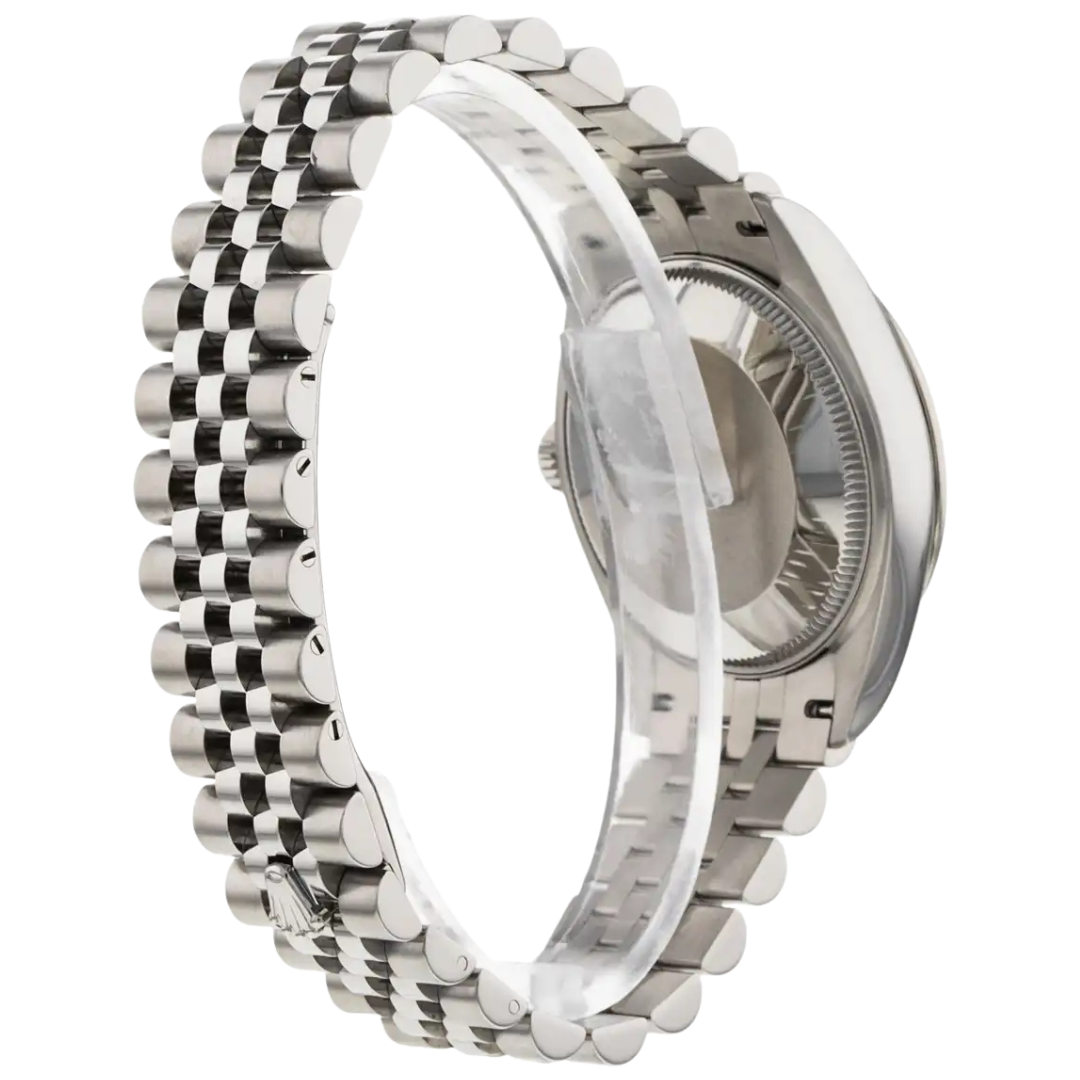 Inside is Rolex’s modern calibre 2236, a highly efficient automatic movement known for its silicon Syloxi hairspring, excellent resistance to shocks and temperature variation, and chronometer-certified accuracy. Paired with the Jubilee bracelet shown in the image, the watch wears comfortably and flows seamlessly from the fluted bezel to the polished and brushed five-link design that Rolex is renowned for. The condition is immaculate throughout, reflecting careful ownership and minimal use.