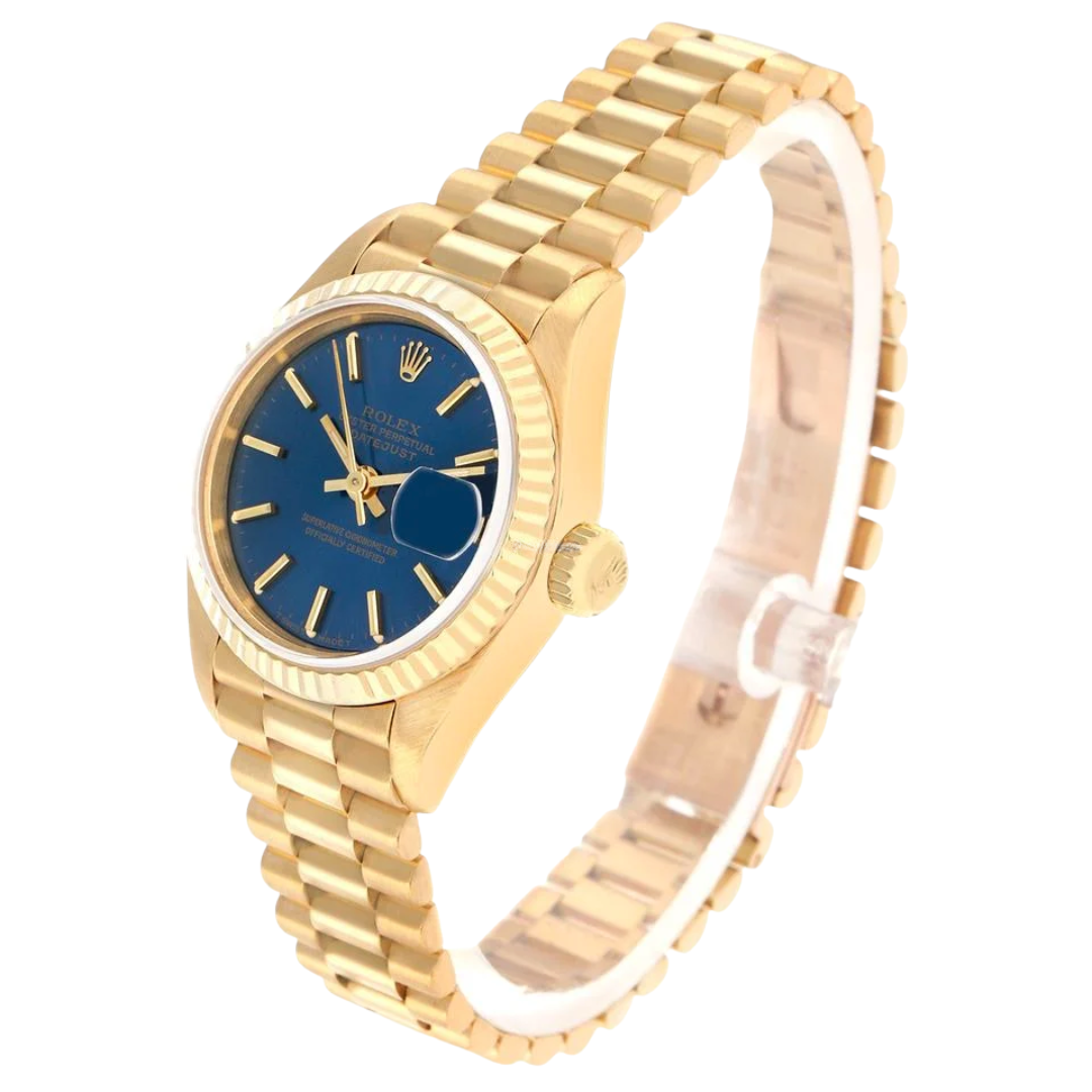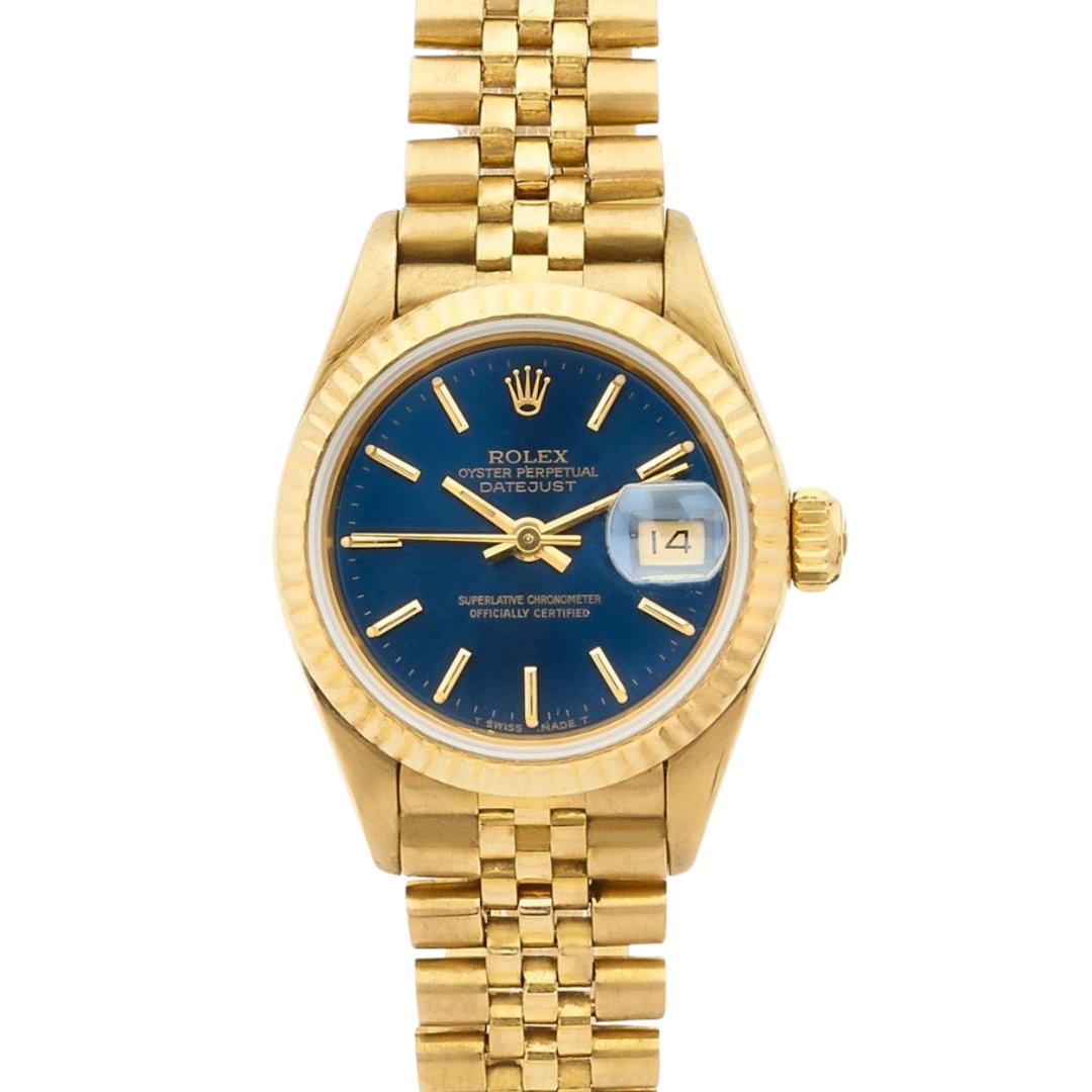 A Rolex Datejust Watch, Full 18ct Yellow Gold with a Fluted Bezel on a Blue Dial