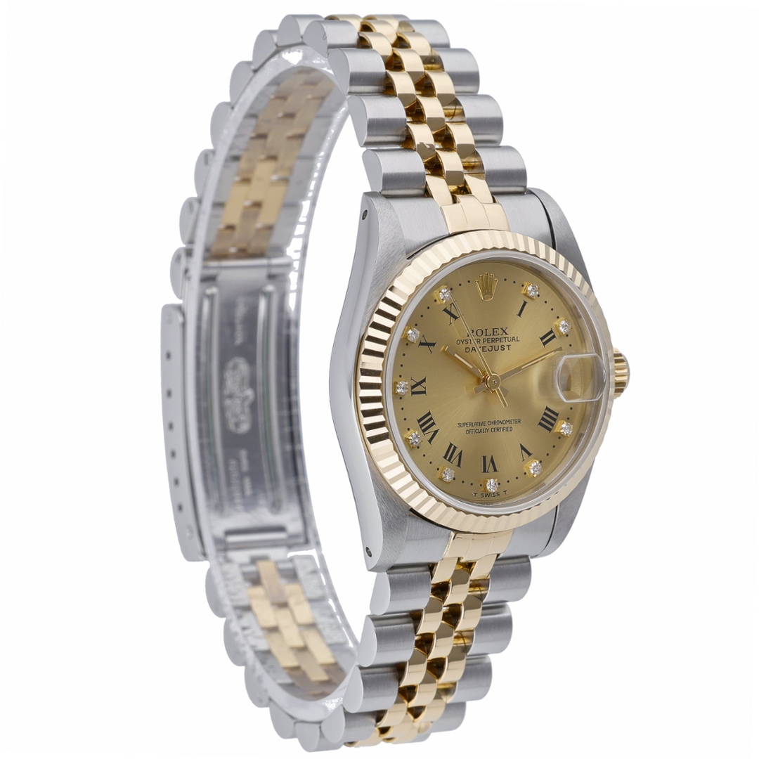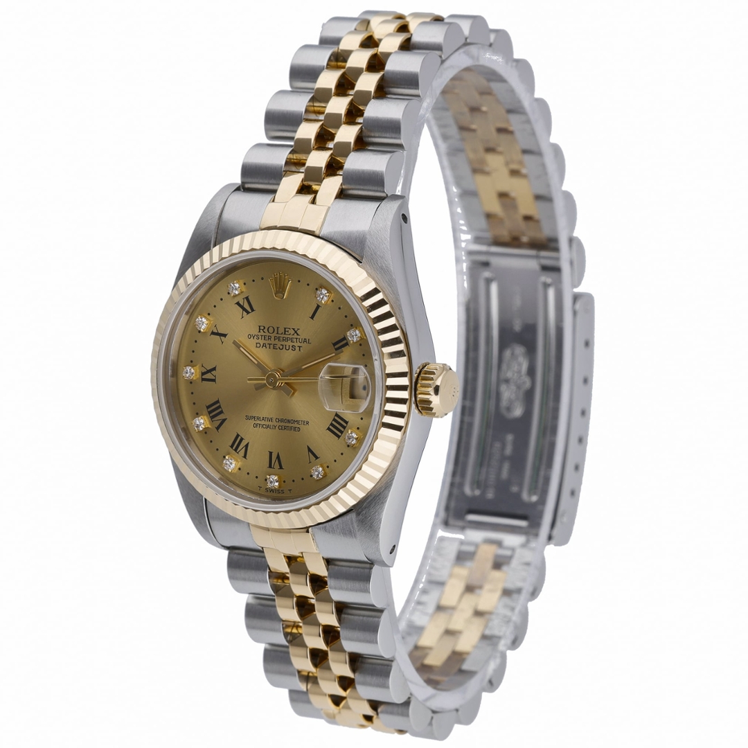 A Bi-Metal Rolex Datejust Watch, Stainless Steel & 18ct Yellow Gold with an 18ct Yellow Gold Bezel on a Champagne Dial  with Original Rolex Diamond Numerals