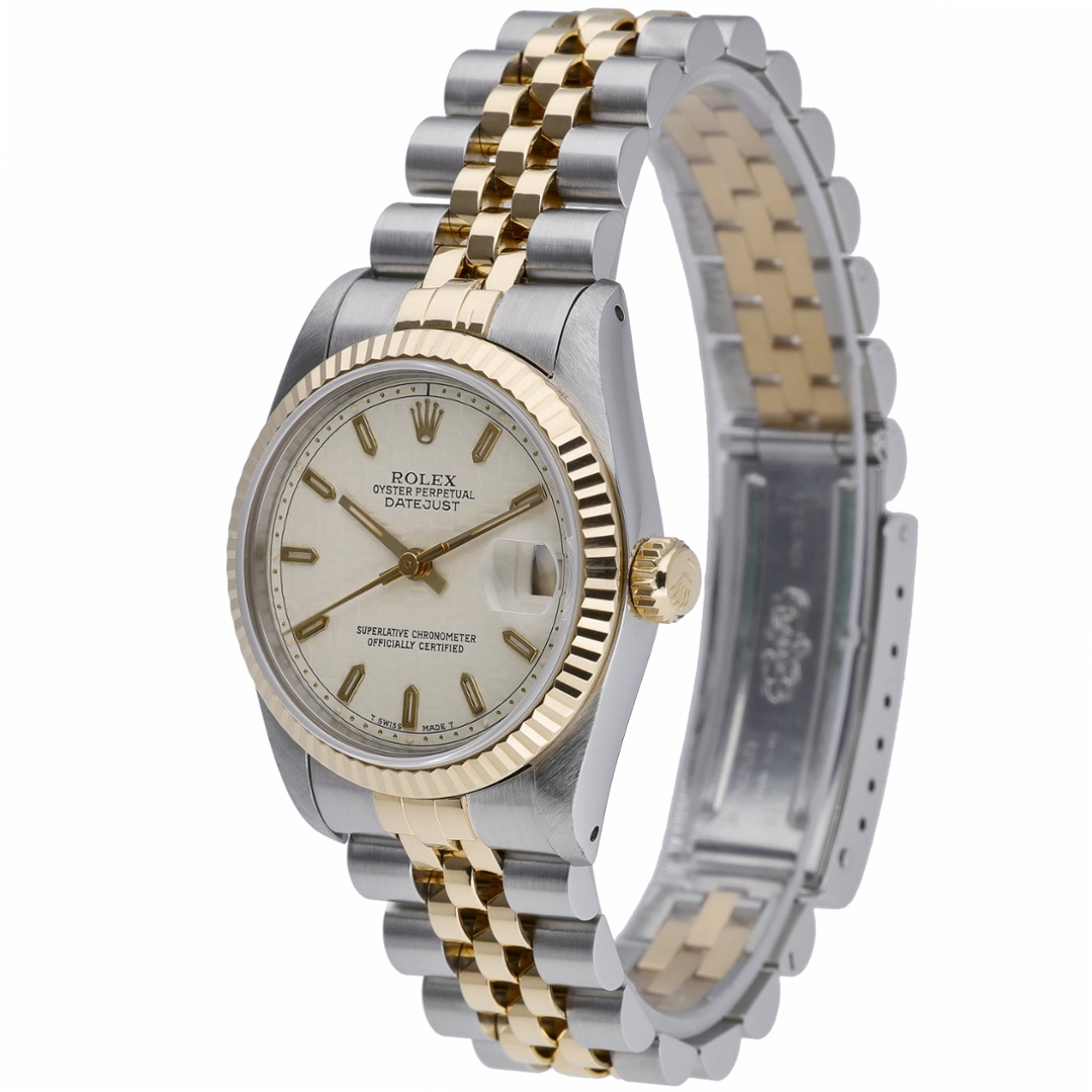 A Bi-Metal Rolex Datejust Watch, Stainless Steel & 18ct Yellow Gold with an 18ct Yellow Gold Fluted Bezel on a Cream Dial.