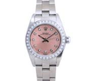 A Rolex Datejust 69160, crafted in stainless steel and elevated with an afterset diamond bezel and a beautifully detailed white mother-of-pearl dial featuring star-shaped diamond numerals — a unique and artistic expression of Rolex elegance. Adding further distinction, the dial includes a diamond-set Roman numeral at 9 o’clock, offering a refined touch of asymmetry and creative flair. With a 26mm case, this model wears with subtle sophistication while delivering timeless Rolex reliability.