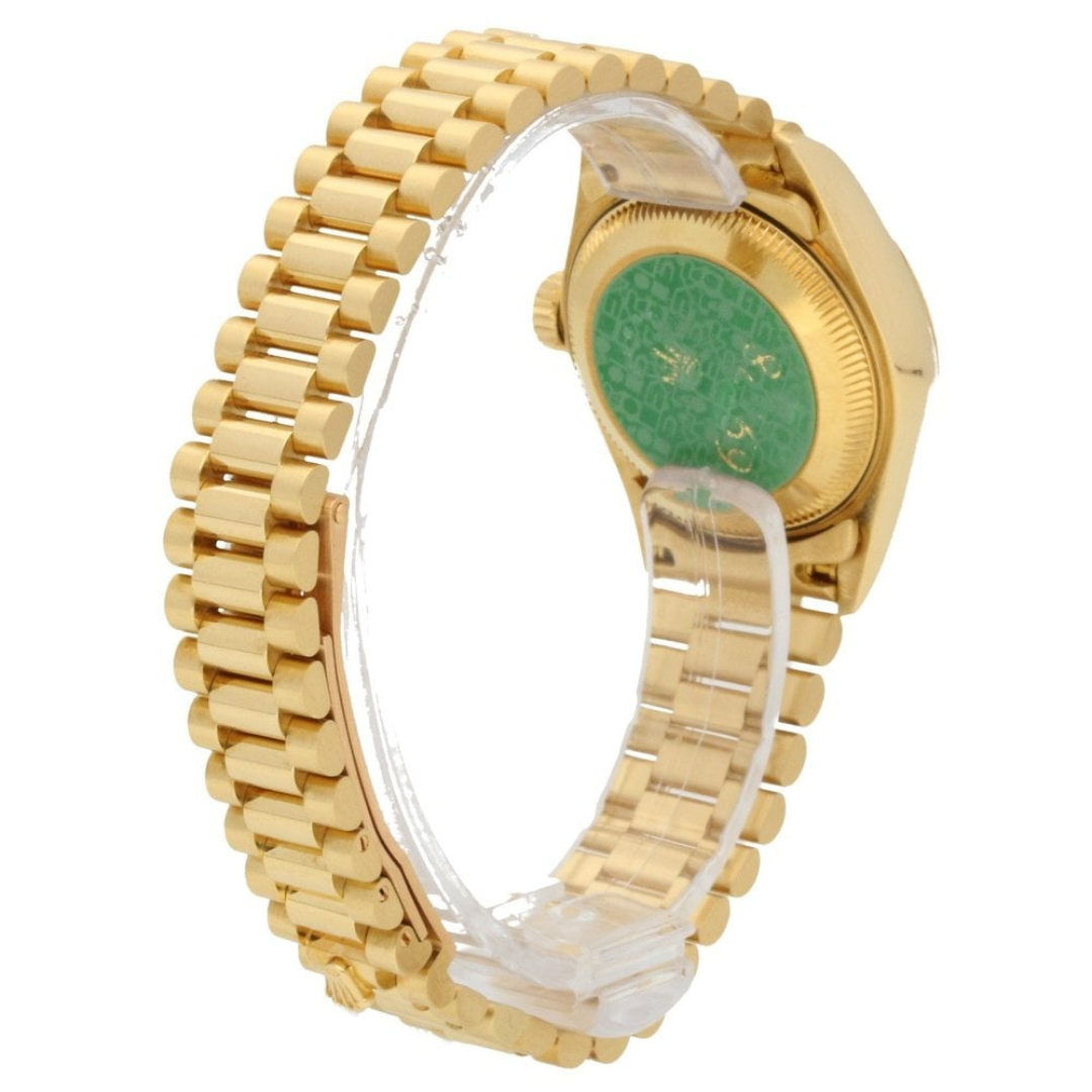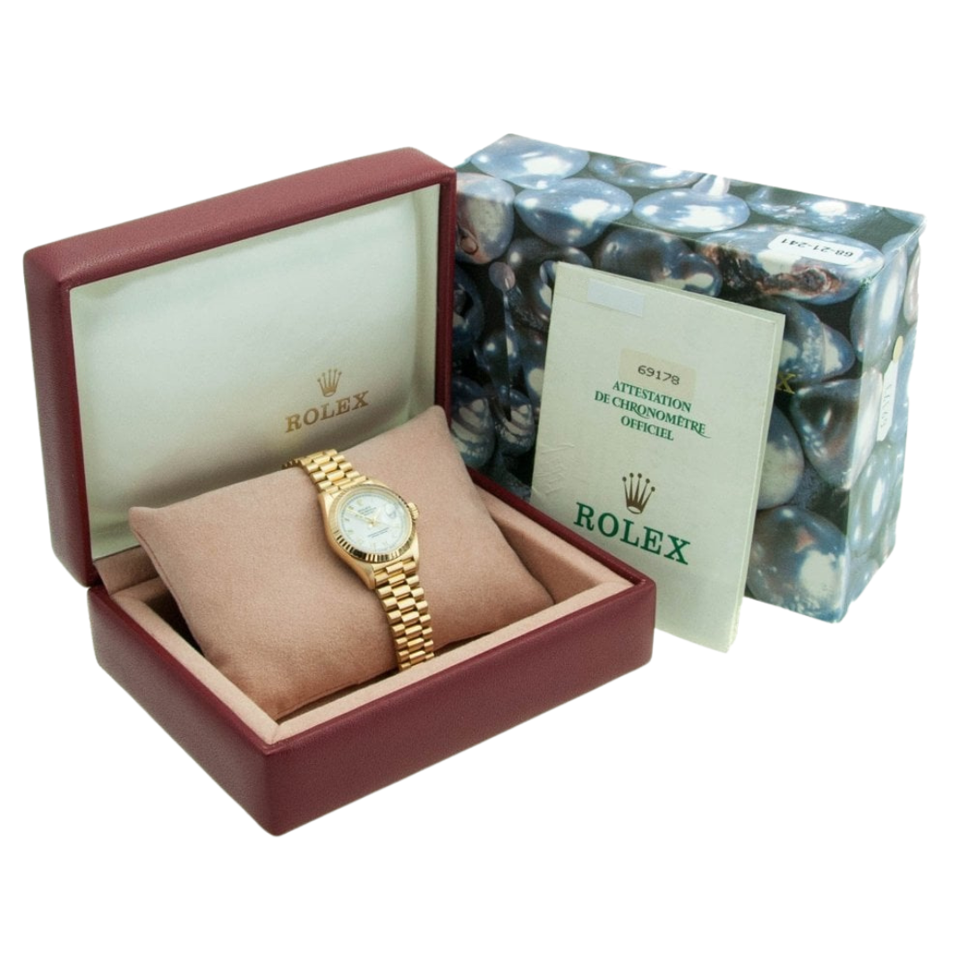 Powered by the Rolex calibre 2135 automatic movement, this watch offers reliable precision and durability, explicitly developed for the Datejust range. The movement is a Superlative Chronometer, tested to Rolex’s stringent standards for accuracy and performance. The screw-down crown and Oyster construction provide everyday robustness, while the solid gold President bracelet completes the watch with a seamless, luxurious feel on the wrist.
