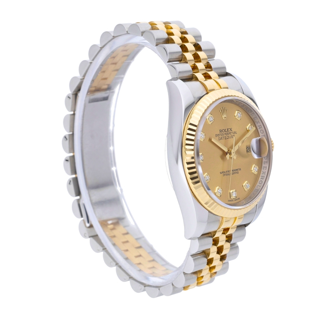 A Bi-Metal Rolex Datejust Watch, Stainless Steel and 18ct Yellow Gold with a Yellow Gold Fluted Bezel and a Champagne Dial with Original Rolex Diamond Numerals